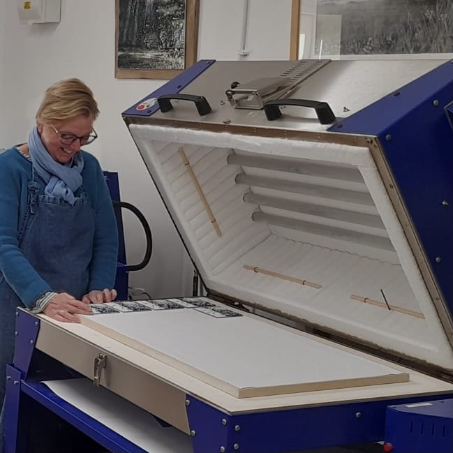 Nancy creates seascapes and landscapes in fused glass, utilising the colours and textures of glass fusing materials and techniques as a fine art medium, further enhanced by the surprises created during the kiln firing process.