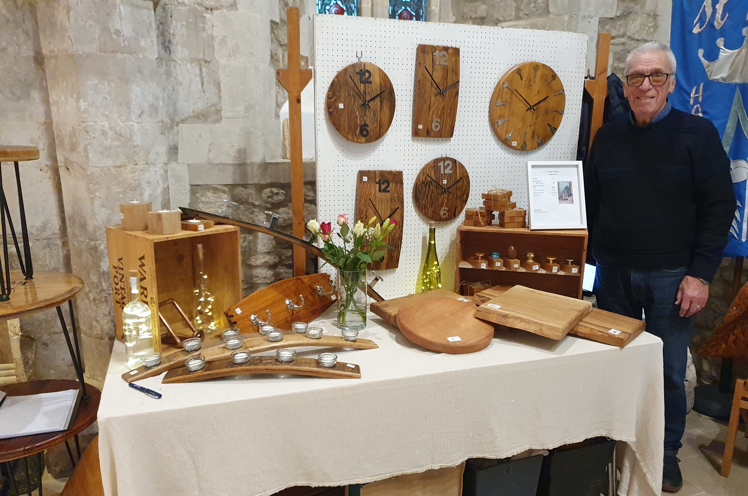 Featuring wood art from wine barrel staves t-lights, clocks,, barrel top tables other wood art: door stops, chopping and charcuterie boards, coat hooks